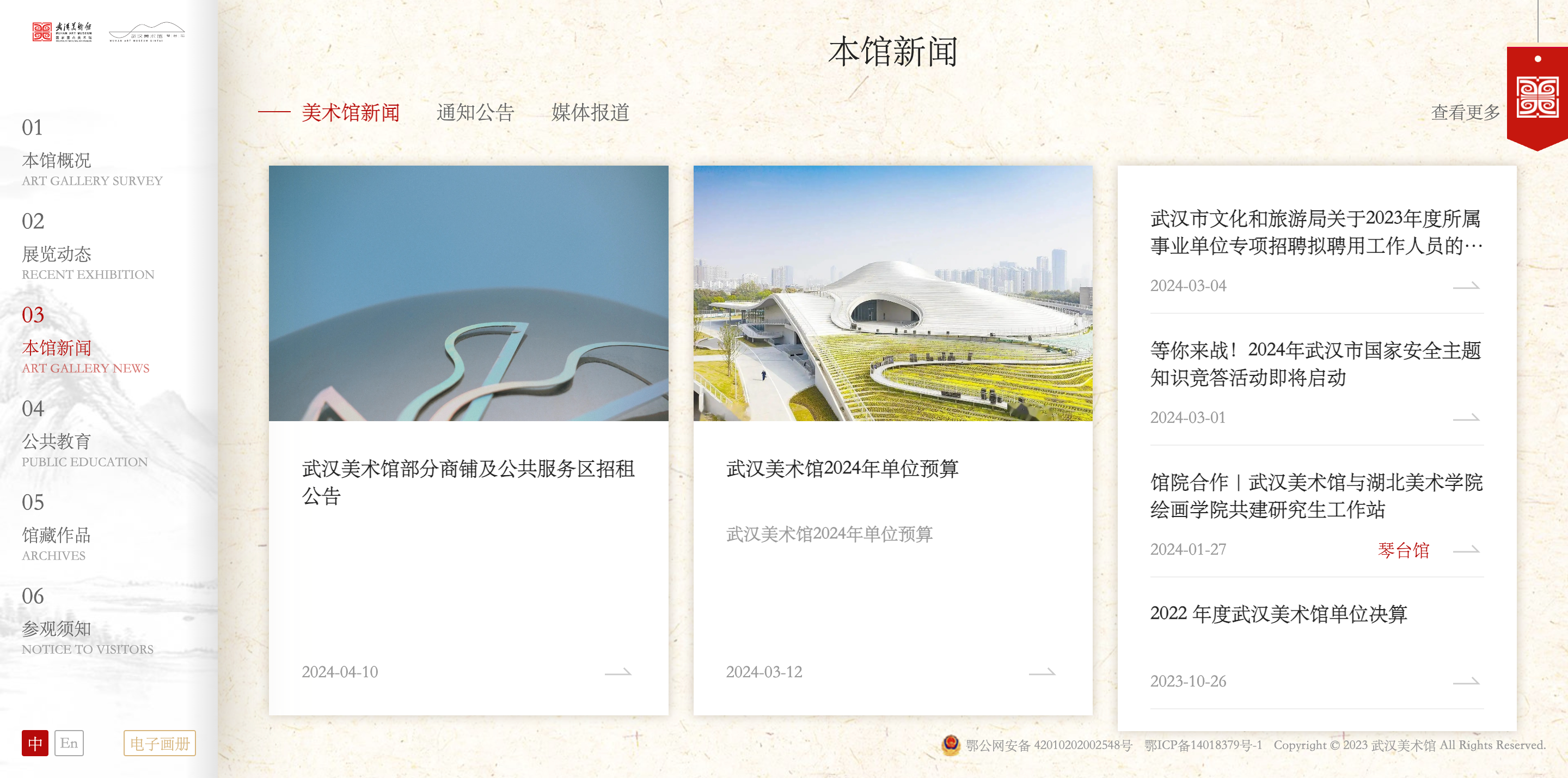 武汉美术馆(琴台馆)位于湖北省武汉市汉阳区琴台中央艺术文化区,与梅子山隔月湖相望,总建筑面积4.3万平方米,展陈面积1万平方米,共5个展厅,展厅间可分可合,组合方式灵活多变,是一座能充分满足艺术展览、作品收藏、公共教育、文旅服务的多功能当代美术博物馆。
