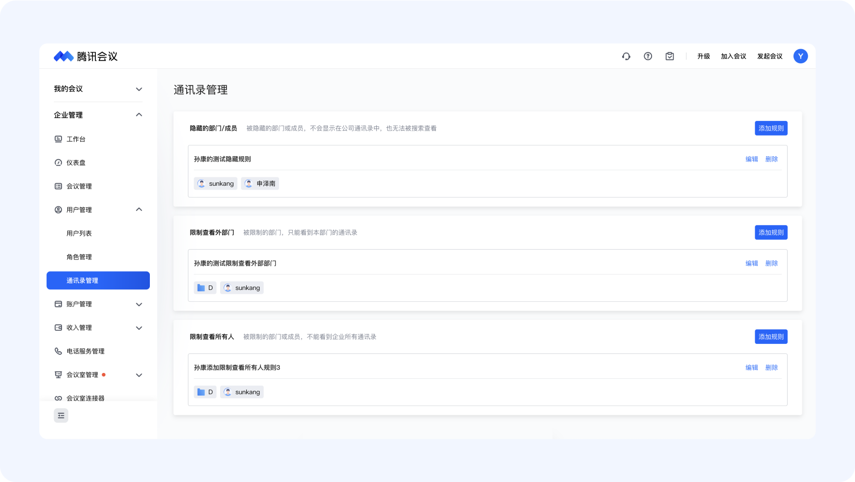 ● 管理员:管理员拥有访问和管理企业账户的广泛权限,能够辅助超级管理员对企业组织会议资源、成员进行管理。