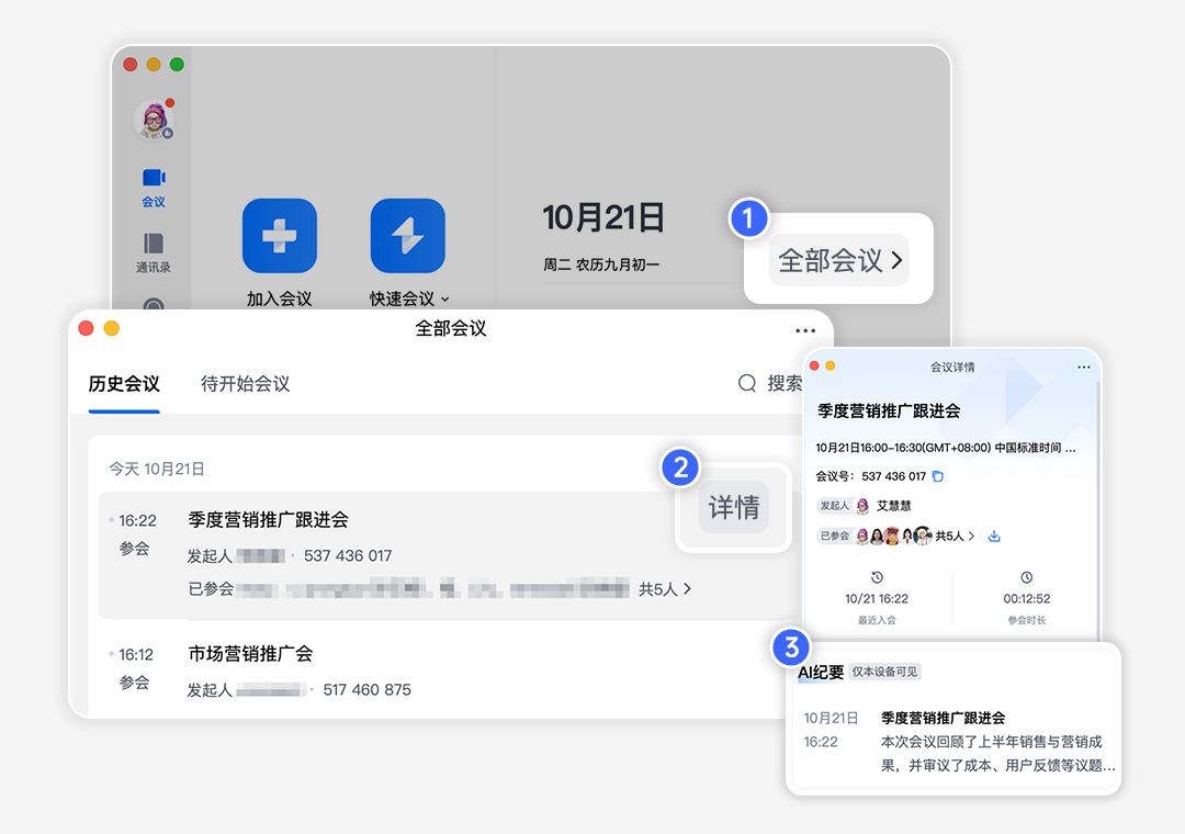 现在不用慌,AI纪要会自动沉淀在历史会议页面,随时可查、可看、可回顾。