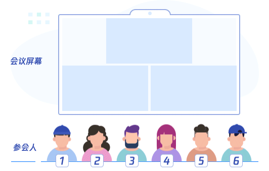 自动轮询,是指在视频会议的宫格内可自动填充与会成员的画面,并周期性切换画面外的下一批与会者。