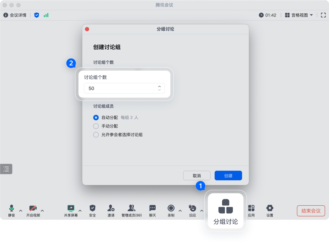 大容量的同时,商业版也实行了“秩序管理”,一方面,商业版单场会议至多设置50个分组讨论,不用新开会议即可在原有会议号里分组讨论,提升培训、课程等场景下的互动感。