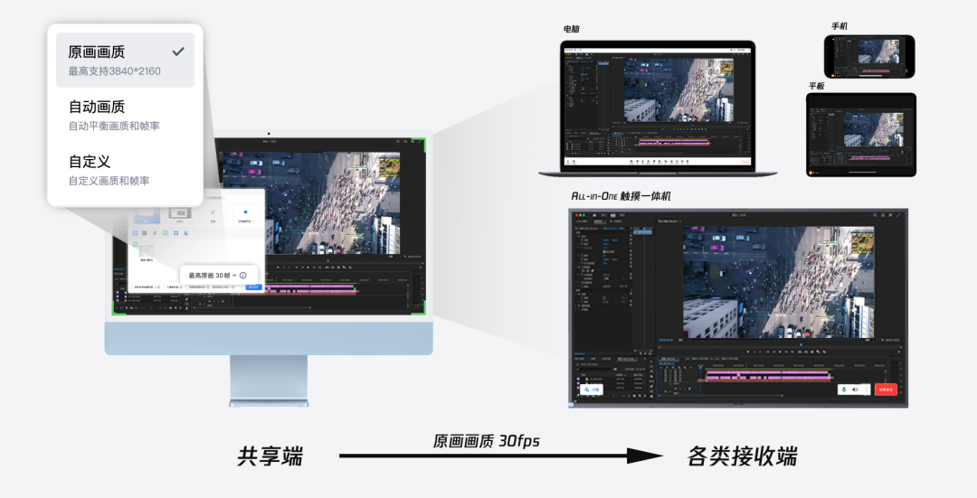 当皇冠crown需要共享精密表格、或展现设计图更丰富细节时,商业版的“原画画质+30帧共享”能力,则能够很好地让参会者看得更清晰。